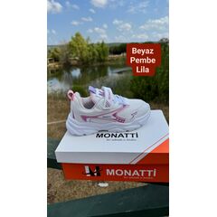 Monatti çocuk spor ayakkabısı, Windex hazır taban yapısıyla hafiflik ve konfor sunar. Beyaz zemin üzerine pembe ve lila detaylarıyla şık ve sevimli bir görünüm kazandırır. Günlük kullanım ve oyun saatleri için uygun olan dayanıklı tabanı, çocukların rahat ve güvenli adımlar atmasını destekler.