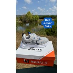Monatti çocuk spor ayakkabısı, Windex hazır taban yapısı sayesinde hafif, dengeli ve konforlu bir kullanım sunar. Buz rengi zemin; lacivert ve saks mavisi detaylarla modern ve ferah bir görünüm kazanır. Dayanıklı tabanı ve rahat yapısı sayesinde günlük kullanım, okul ve oyun aktiviteleri için ideal bir tercihtir. Çocukların gün boyu rahat ve güvenli adımlar atmasını destekler.